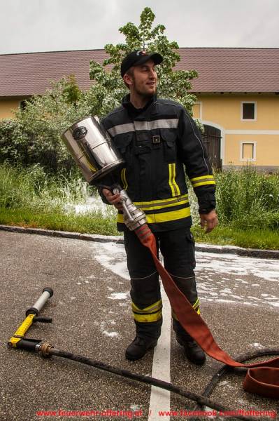 Der Feuerwehr Oftering stehen in beiden Fahrzeugen unterschiedlichste Gerätschaften zur Verfügung, mit verschiedenen Schaummittel Schwer-, Mittel- und Leichtschaum zu erzeugen.