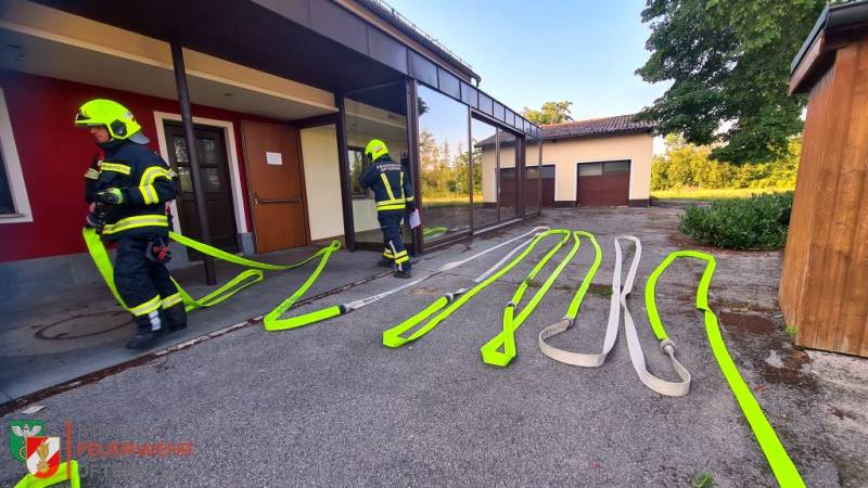 Übungsannahme war ein Brand, inkl. vermisster Person, am Ende des Wohnbereiches im Gasthaus zur Haltestelle. Der Atemschutztrupp musste schnellstmöglich die vermisste Person finden und retten, sowie den Brand löschen.