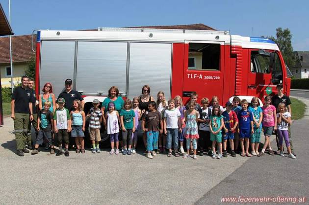 Viel zu Erleben gab es für die Ofteringer Hortkinder bei ihrem diesjährigen Besuch bei der Feuerwehr Oftering. Trotz brütender Hitze waren die Kinder voll dabei, wenn es ums Fahren mit den Fahrzeugen oder Strahlrohrspritzen ging!