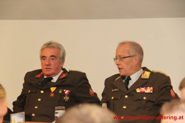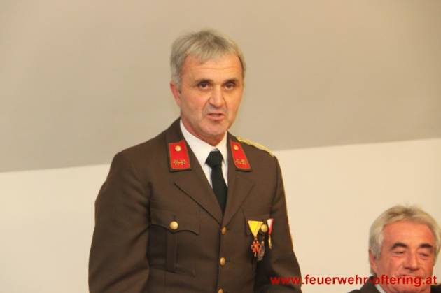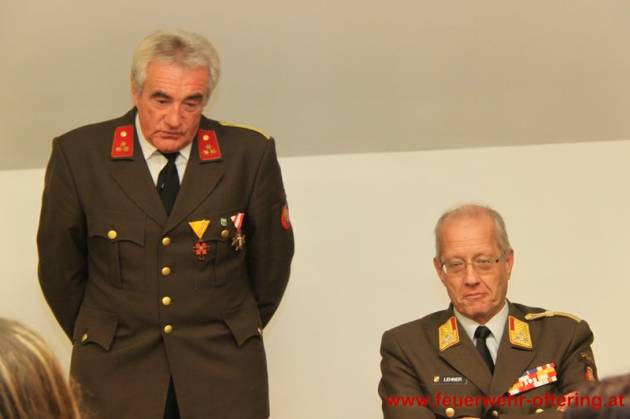 Als Dank für ihre jahrzehntelange - lange auch gemeinsame - Arbeit an der Spitze der Feuerwehr Oftering, wurden den beiden Kameraden Reinhold Hetzmannseder und Georg Meindlhumer die Ehrendienstgrade "Ehrenkommandant" und "Ehrenkommandant-Stellvertreter" durch Bezirksfeuerwehrkommandant OBR Wolfgang Lehner und Kommdant HBI Josef Hetzmannseder verliehen.