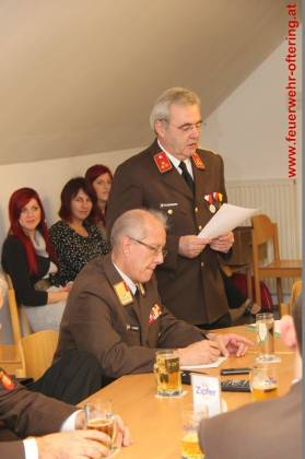 Ein halbes Jahr nach der Neuwahl des Kommandos wurden bei einer Mitgliederversammlung im Beisein des Bezirkskommandanten die ausgeschiedenen Führungskräfte geehrt.