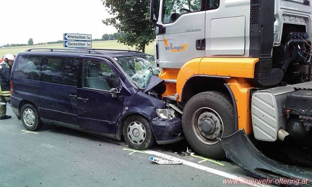 Zwei PKW und ein LKW waren in einen schweren Verkehrsunfall im Kreuzungsbereich Marchtrenker Strasse / Bärenstrasse verwickelt. Zwei PKW touchierten sich, einer davon kollidierte daraufhin mit einem LKW. BILDER NUN ONLINE