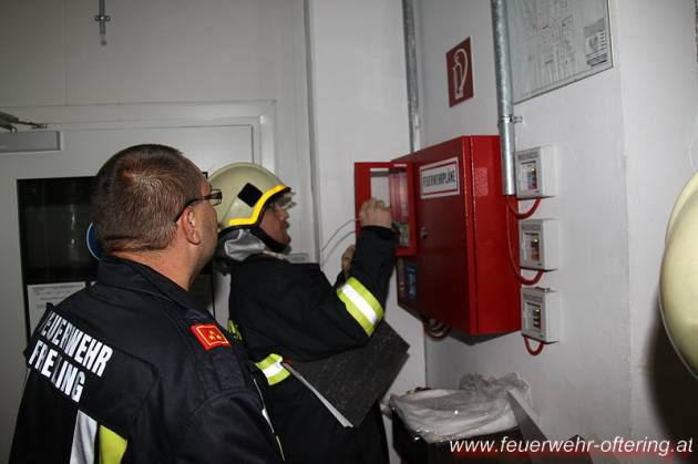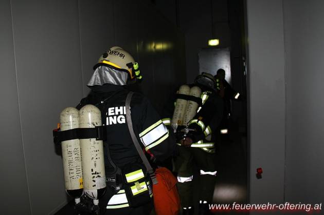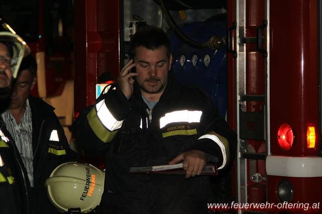 Eine stark rauchende Brennkammer eines Räucherschrankes führt um 22:24 Uhr zur Alarmierung der beiden Ofteringer Feuerwehren. Nach Ankunft von Tank und Pumpe Oftering wurde die erste Lageerkundung durch die beiden Kommandanten und einen Atemschutztrupp der FF Oftering vorgenommen. Weitere AS-Trupps standen in Bereitschaft.