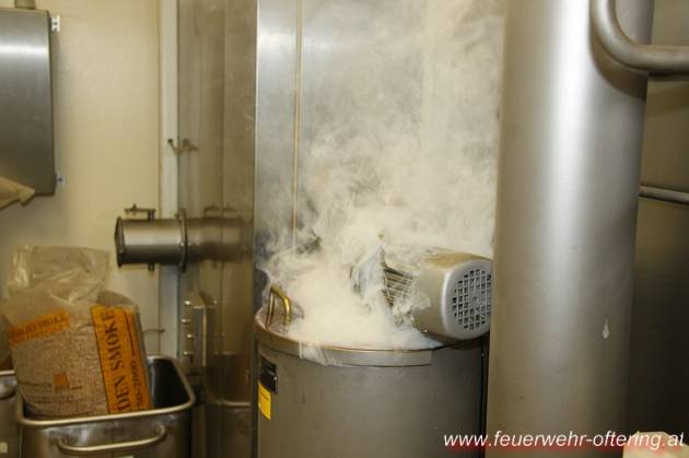 Über die Brandmeldezentrale wurde der Melder 10/01 als Auslösegrund angezeigt, welcher sich in der Nähe der Räucherkammern befindet. Beim Eintreffen im besagten Raum wurde leichter Brandgeruch festgestellt und Rauch wahrgenommen. Schlussendlich stellte sich heraus, dass erneut die Brennkammer eines Räucherschrankes zur Auslösung geführt hatte, da aus dieser der Qualm austrat. Mit dem Abschalten der Anlage wurde auch ein weiterer Rauchaustritt unterbunden.