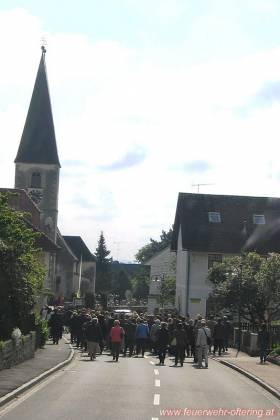 Beim traditionellen Umzug von der Schule zur Pfarrkirche vor der Messse zur Kommunion wurde von der Feuerwehr die behördlich angeordneteVerkehrsregelung durchgeführt.