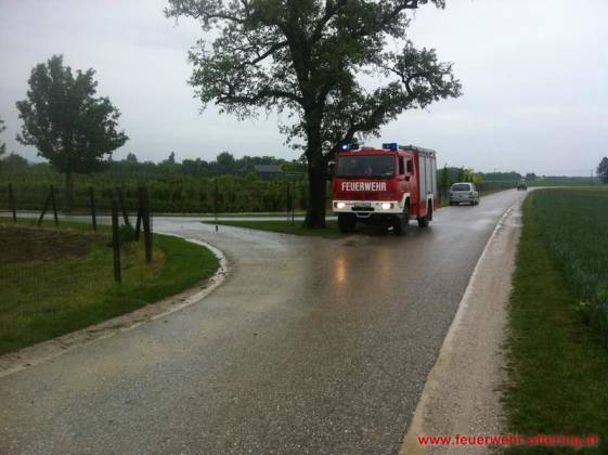 Unmittelbar nach dem Sturmschaden-Einsatz wurden die Einsatzkräfte telefonisch über einen PKW informiert, welcher in Oberbachham einen Zaun durchschlagen hat. Binnen kürzester Zeit begab sich LFB-A Oftering zur Unfallstellen. Dort angekommen wurde ein PKW in einer landwirtschaftlichen Anlage vorgefunden. Die Insassen wurden von der Rettung versorgt. Die Feuerwehr unterstützte bei der Bergung des PKW's, Betriebsstoffe mussten nicht gebunden werden.