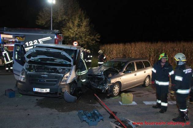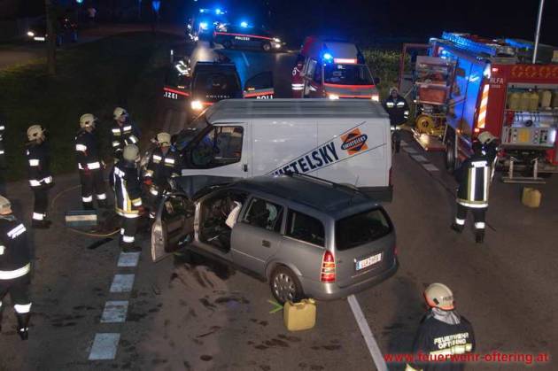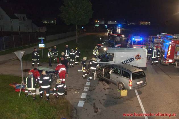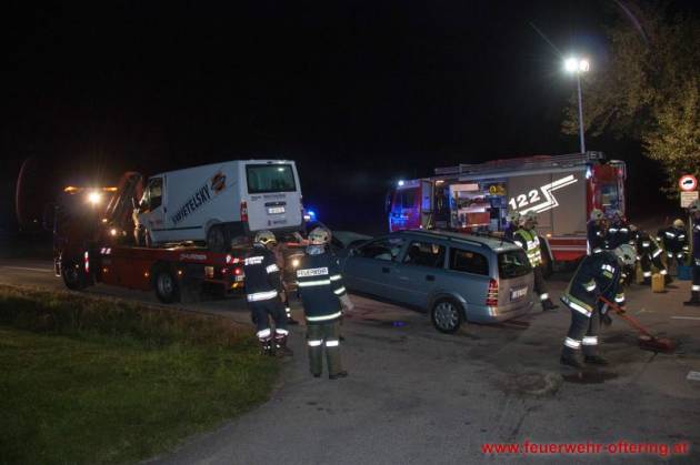 Vom ersteintreffenden Fahrzeug Pumpe Oftering wurde durch Kommandant Hetzmannseder sofort der Kontakt mit der Exekutive hergestellt. Da die Verletzten bereits durch den Rettungsdienst aus den Fahrzeugen befreit werden konnten, waren in der Erstphase keine Rettungsmaßnahmen notwendig. Nach Eintreffen von KDO und RLF Freiling mit Pflichtbereichskommandant Miesbauer sowie Tank Oftering und anschließend Pumpe Freiling wurden nach Absprache Absicherungsmaßnahmen durchgeführt, der Brandschutz aufgebaut sowie die Einsatzstelle ausgeleuchtet.