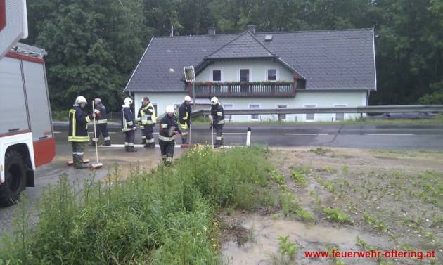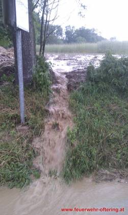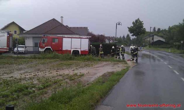 Ein starker Platzregen führte mit den vielen Regenfällen der letzten Tage und den "vollen" Böden zu mehreren lokalen Überschwemmungen, insbesondere im Bereich von landwirtschaftlichen Flächen.