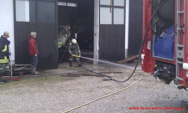 Gemeinsam mit der FF Freiling wurden verschiedene Einsatzorte abgefahren und mit Sandsäcken, Kanalratte, HD-Rohr und Schaufeln und Besen weitere Überflutungen verhindert.