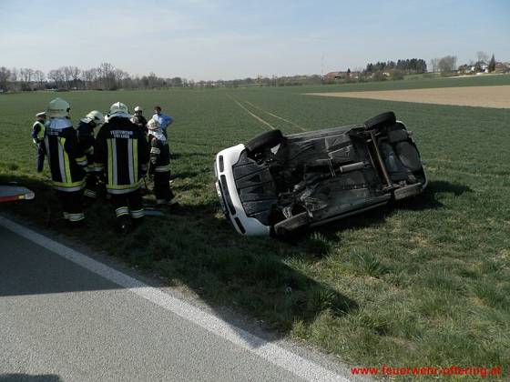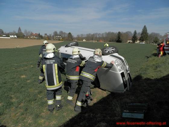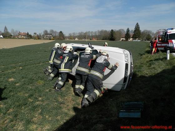 Die Einsatzkräfte der beiden Ofteringer Feuerwehren stellten das Fahrzeug wieder auf die Räder, der Lenker wurde vom ASB Alkoven erstversorgt, da diese unmittelbar nach dem Unfall an der Unfallstelle vorbeikamen.