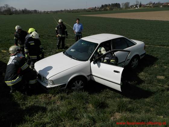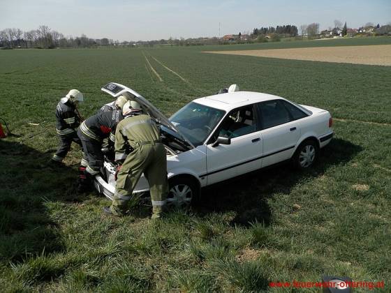 Zwischen Hausleiten und Jebenstein kam ein PKW auf der Marchtrenker Landesstrasse von der Fahrbahn ab, rutschte in ein Feld worauf sich das Fahrzeug auf die Seite legte.