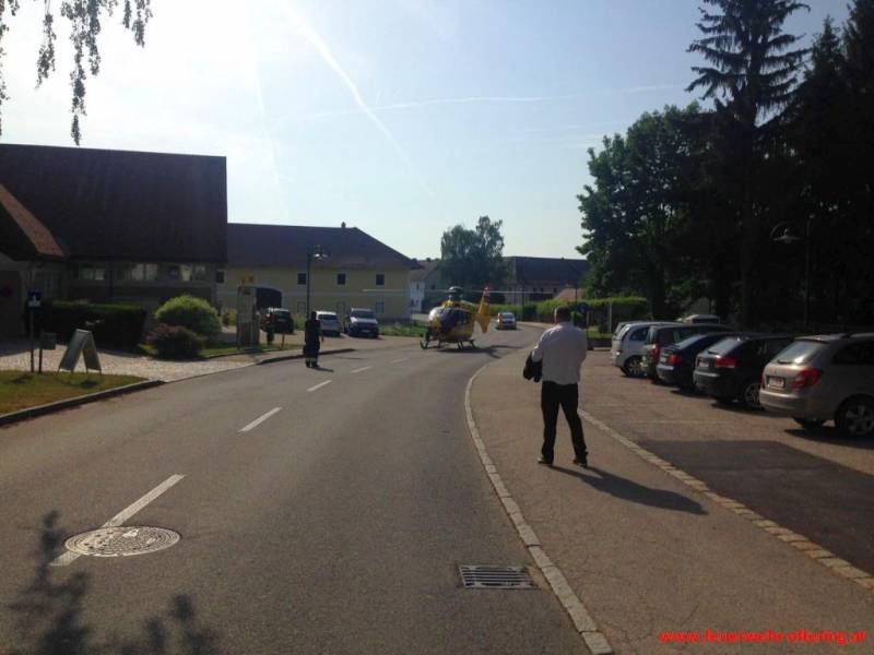 Während für die Fronleichnamsprozession abgesperrt wurde, kollabierte eine Person aus unbekannten Gründen. Sofort wurde durch die Kameraden der FF Oftering der eigene Erste-Hilfe Rucksack an Ort und Stelle gebracht, um dem anwesenden, ausgebildeten Rettungssanitäter die nötigen Hilfsmittel zur Verfügung zu stellen. Gleichzeitig erfolgte die Einweisung der weiteren eingetroffenen Rettungskräfte.