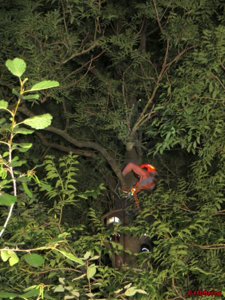 Kater Hermes - laut Wikipedia u.a. der Schutzgott der Reisenden - hatte seine eigene Reise etwas suboptimal geplant und war in einem Baum gefangen. Die FF Oftering befreite den Kater aus seiner Notlage und konnte ihn der überglücklichen Besitzerin wieder übergeben. Den einen oder anderen Kratzer musste der Retter verkraften - immerhin war das Tier in einer Ausnahmesituation - beim nächsten Zusammentreffen wird der Kater sicher Reue zeigen und seinem Retter entsprechend danken.
