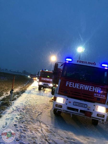 In den frühen Morgenstunden ereignete sich auf der Paschinger Strasse zwischen Oftering und Breitbrunn ein schwerer Verkehrsunfall. Die Feuerwehren Oftering, Freiling und Breitbrunn waren vor Ort.