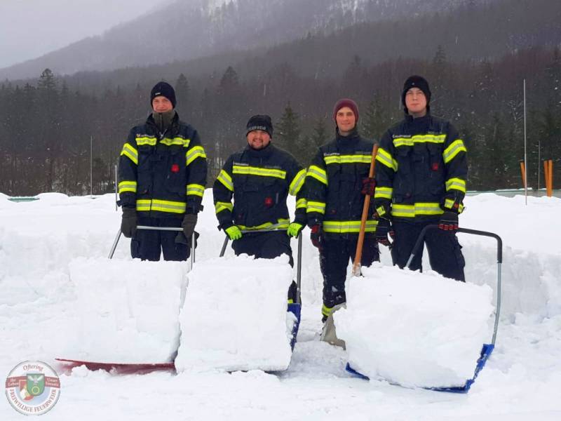 Gemeinsam mit fünf Kameraden der FF Freiling, machten sich vier Kameraden der FF Oftering auf den Weg nach Ebensee, um die Einsatzkräfte vor Ort beim Räumen der Dächer zu unterstützen.