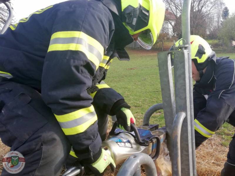 Ein sofort einberufenes Gipfel-Gespräch zwischen Feuerwehr, Paarhufer und Besitzer musste kurzerhand wieder abgesagt werden. Das Opfer stellte sich stur und zog es vor, sich mit seinen Artgenossen zu vergnügen.
