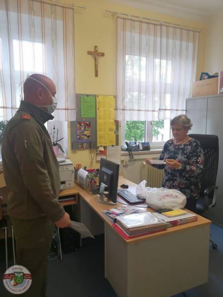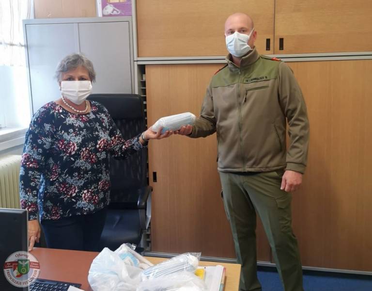 Für den Pflichtbereich Oftering konnte Kommandant Stefan die Masken persönlich an Direktorin Sonja übergeben, die sofort die Qualitäts- und Quantitätskontrolle durchführte. Somit steht einem geschützten Schulstart am Montag nichts mehr im Weg.