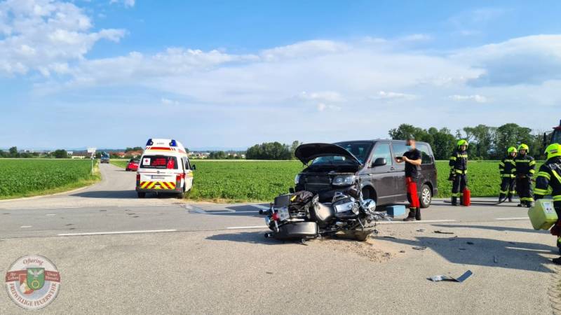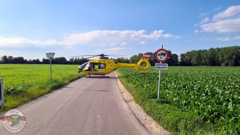 Die PKW-Lenkerin fuhr auf der Paschinger Strasse nach Breitbrunn hinter einem Traktor und wollte nach links Richtung Oberpuch abbiegen. Dabei übersah sie den entgegenkommenden Motorradfahrer, der durch die Kollision im angrenzenden Feld landete. Nach der Erstversorgung durch den Notarzt, wurde er mit dem Rettungshubschrauber ins Krankenhaus geflogen. Die Insassen des PKW blieben unverletzt.