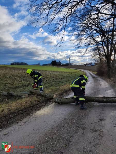 Insgesamt drei Einsätze bescherte uns Sturmtief "Ylenia" an diesem Tag. Zwei davon waren der Klassiker „Baum auf Strasse“. Mit Motorsäge und (Wo)Man-Power konnten beide Einsätze in kürzester Zeit erledigt werden.