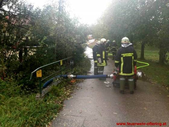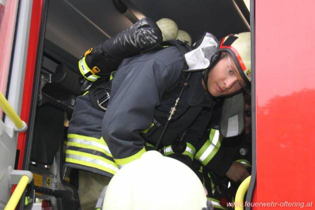 Feueralarm um ca. 11 Uhr in der Ofteringer Volksschule, Feuer im Konferenzzimmer schließt zwei Klassen im ersten Stock ein, insgesamt sind ca. 120 Kinder zu evakuieren - zum Glück nur bei einer Übung!