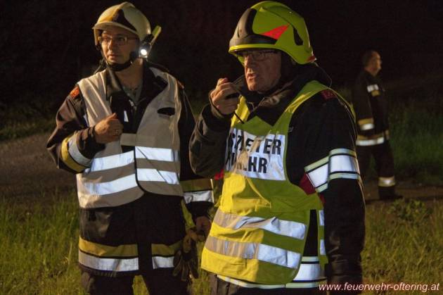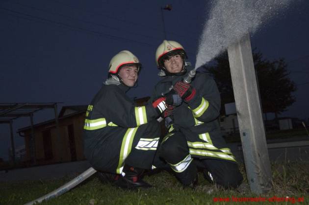 Über 70 Einsatzkräfte von den Feuerwehren Axberg, Freiling und Oftering übten gemeinsam zu nächtlicher Stunde im Ofteringer Zentrum den Erstfall - Brand eines landwirtschaftlichen Objektes