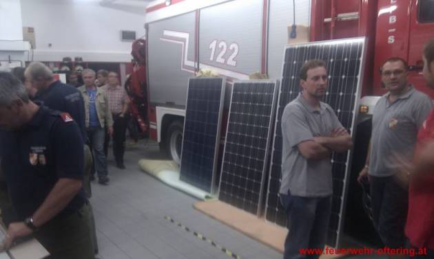 Der Markt für Photovoltaikanlagen boomt, und so hat Oftering nun neben Anlagen auf Einfamilienhäusern auch bereits eine Anlage mit deutlich über 100 m² Kollektorfläche. Die Gefahren für die Feuerwehr wurden von kompetenter Schulung bei der ersten "3er-Schulung" erläutert.