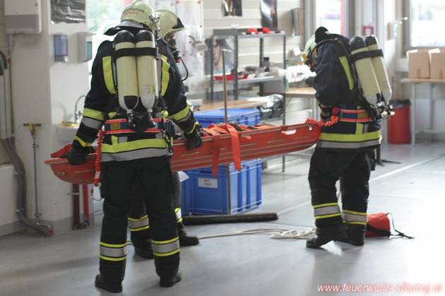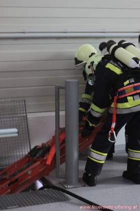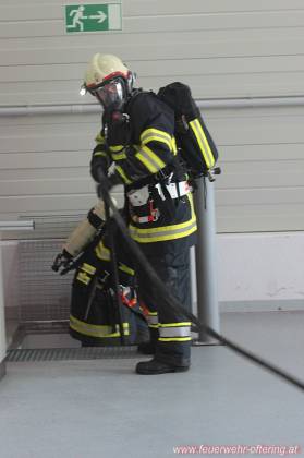 Den Ofteringer Kameraden wurde der Einsatzabschnitt "OST" zugeteilt, unter der Abschnittsleitung von AW Roland Weber. Durch einen Atemschutztrupp wurde über einen Notabgang in den völlig verrauchten und dunklen Keller vorgegangen. Nach längerer Suche in dem weitläufigen Stockwerk wurde der Brandherd - ein E-Verteiler gefunden. Dort wurde auch die erste vermistte Person lokalisiert. Die Person wurde gerettet und der Brand gelöscht. Die weitere Personensuche wurde durch einen weiteren Atemschutztrupp durchgeführt.