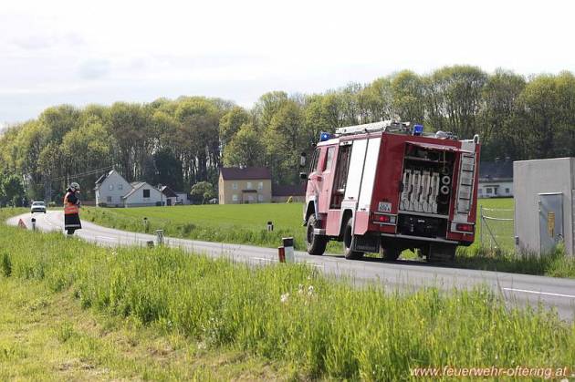 Parallel dazu wurde durch LFB-A Oftering in das Gelände der Fa. ALMI gefahren, um mit der Tragkraftspritze FOX aus dem 300 m³ grossen Löschwasserbehälter anzusaugen und die Wasserversorgung für RLF-A Freiling und TLF-A Oftering sicherzustellen.