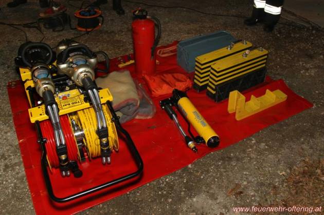 Den Abschluss bildete eine kleine Auffrischungseinheit mit dem ältesten Rettungsgerät der Feuerwehr Oftering - dem knapp 30 Jahre alten Force-Tool.