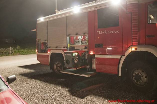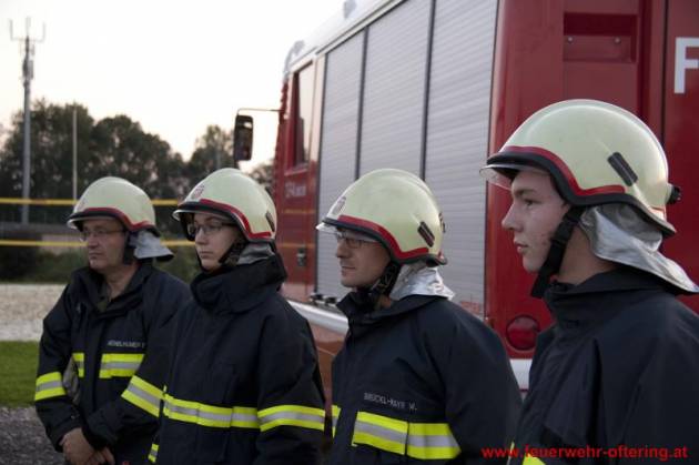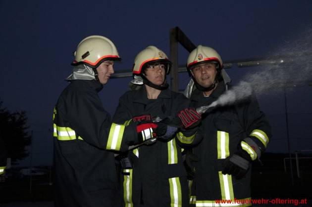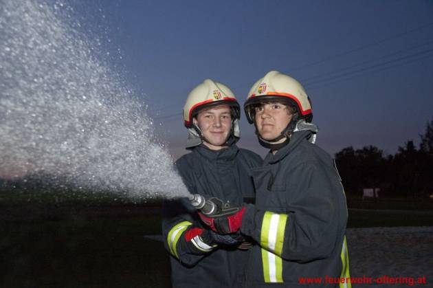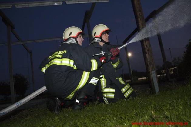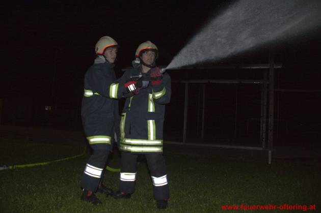 Am Ofteringer Sportplatz wurden mit beiden Fahrzeugen Stellung bezogen und mehrere Löschangriffe durchgeführt. Dabei wurde neben einem Vegetationsbrand auch der Brand eines Objektes beübt sowie der Schutz eines Nachbarobjektes.