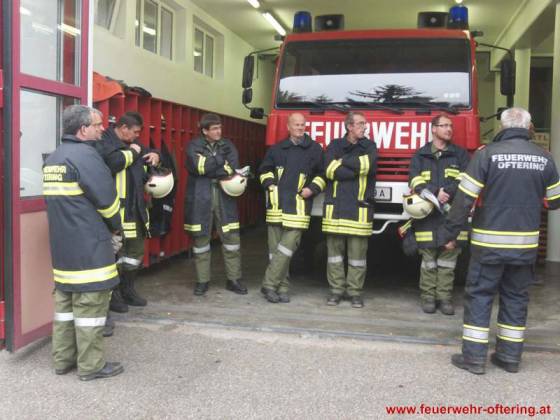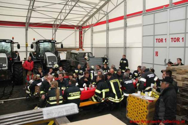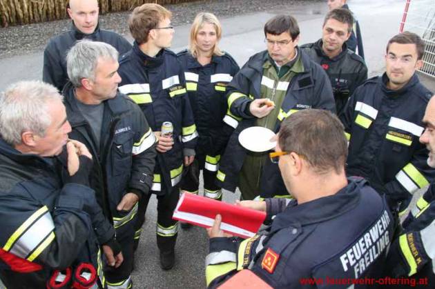 Die Gemeinschaftsübung der beiden Ofteringer Feuerwehren führte die Kameraden ins Ofteringer Gewerbegebiet, wo der Brand einer Reinigungsfirma angenommen wurde.