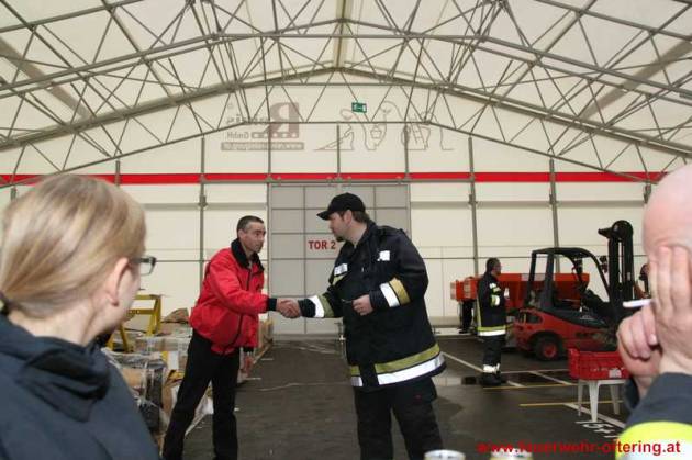LFB Freiling führte einen Außenangriff mittels Kran von der Westseite des Geländes durch, Tank Oftering bekämpfte den Brand von der Ostseite und schützte gleichzeitig den 1000l Dieseltank auf der Südseite des Geländes. Da die Wasserversorgung mittels Hydranten nicht leistungsfähig genug ist, musste aus dem Haidbach von Pumpe Oftering eine Relaisleistung mit 12 B-Schläuchen aufgebaut werden.