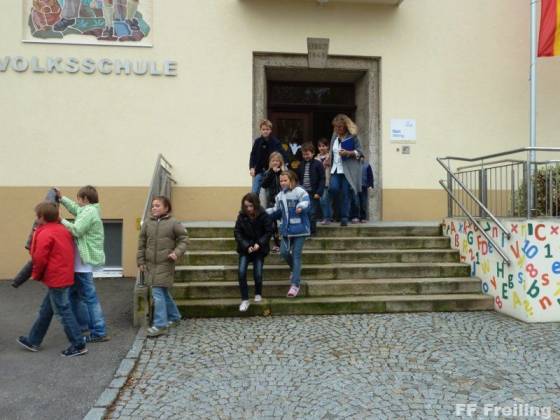 Übungsannahme bei der diesjährigen Schulräumungsübung war ein Brand im Konferenzzimmer im ersten Obergeschoß der Ofteringer Volksschule. Zu diesem Zeitpunkt wurden ca. 120 Kinder in 6 Klassen im Gebäude unterrichtet.