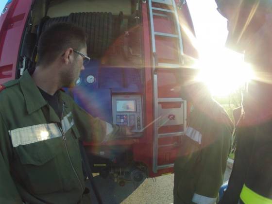 Für den Fall, dass im Brandfall "jede Minute zählt", ist das Tanklöschfahrzeug mit mehreren Schnellangriffen ausgestattet, welche Thema der Übung waren. Neben den beiden Hochdruckhaspeln gibt es auch einen vorgekuppelten B-Schnellangriff mit Verteiler sowie einen C-Schnellangriff mit separatem Z4 Schaumzumischer für kleinere Brände mit notwendiger Zumischung von Löschschaum.