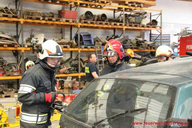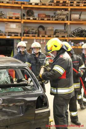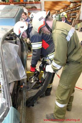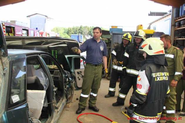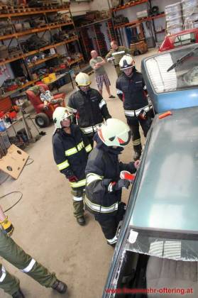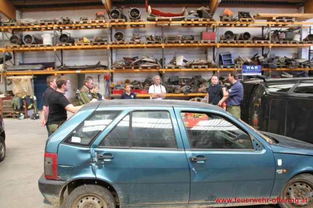 Zum Einstieg in das Thema technische Hilfeleistung wurde an PKW's geübt. Hier zeigte sich der gute Ausbildungsstandard der Wehren - rasch konnten die gestellten Aufgaben bewältigt werden. Doch viel wichtiger war das gemeinsame Erarbeiten der Lösung, wo den Diskussionen genug Zeit eingeräumt wurde. Interessant war auch der Vergleich der Gerätschaften der einzelnen Wehren - Ablageplätze werden von allen standardmäßig aufgebaut, im großen und ganzen auch mit der gleichen Bestückung an Geräten. Doch in Details kann man immer von den Erfahrungen der anderen Wehren profitieren.