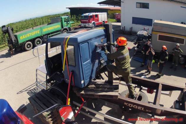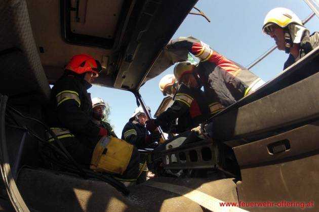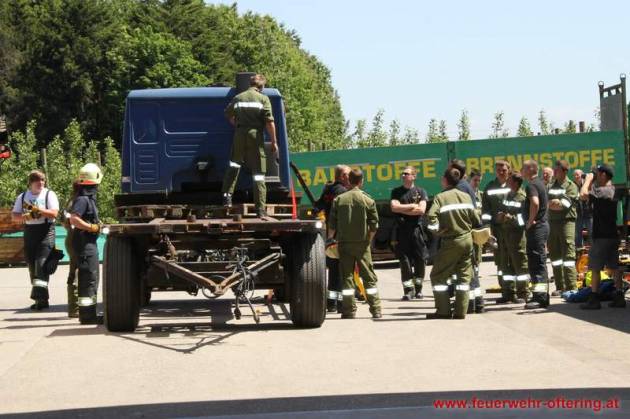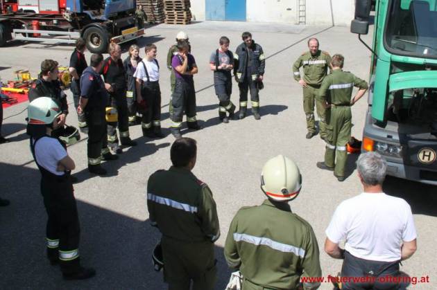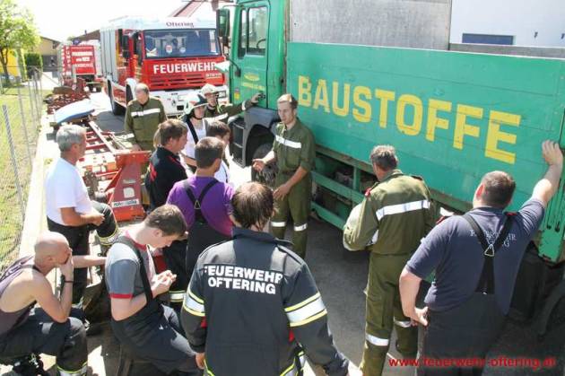 Basierend auf einer Idee von AW Martin Achatz der FF Oftering wurden Möglichkeiten sondiert, an LKW's zu üben. Da sich dies wie erwartet schwierig herausstellte, wurden auch für diese Übung die Feuerwehr-Kräfte überörtlich gebündelt und die Übung gemeinsam organisiert und durchgeführt. So konnte für die teilnehmenden Kameraden eimn außergewöhnlicher Nachmittag zusammengestellt werden, nach dem jeder mit vielen neuen Erfahrungen nach Hause ging.
