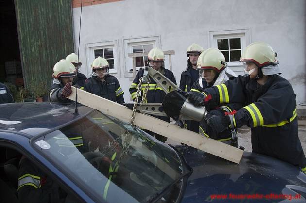Als Einstimmung zur Frühjahrsübung für jene Kameraden, die gerade die Grundausbildung absolviert haben, wurde das Thema technische Hilfeleistung am PKW beübt.