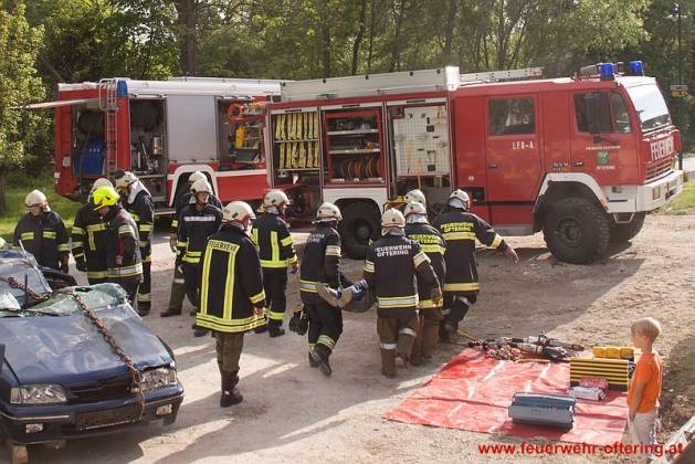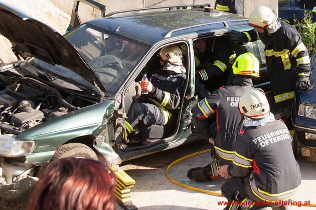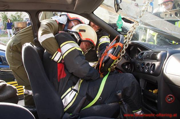 In einem zweiten Durchgang wurden dann Insassen über den Kofferraum gerettet, wobei exemplarisch zwischen schonender Rettung und Crashrettung unterschieden wurde.