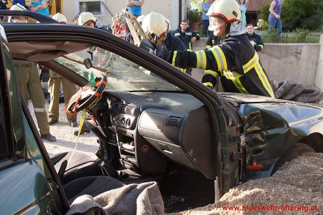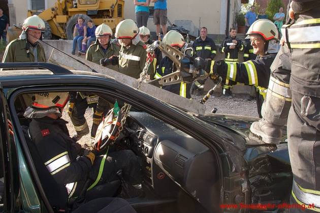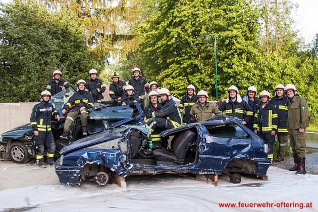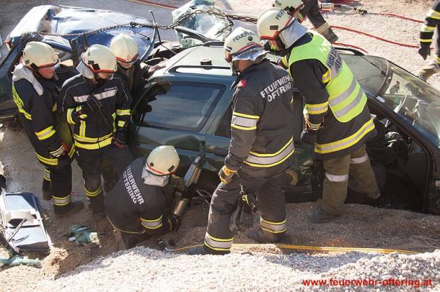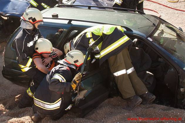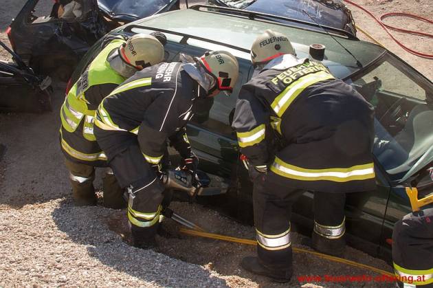 Anschließend wurden gemeinsam Techniken für die Befreiung von Insassen beübt, die durch Lenkrad oder Pedale eingeklemmt sind.