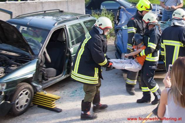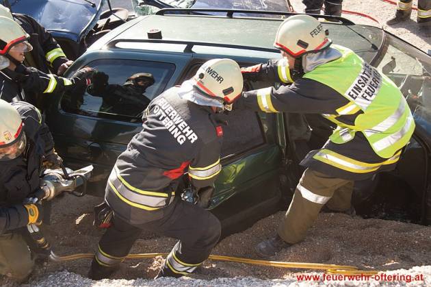 Die Kräfte wurden anschließend in Gruppen geteilt, welche die Lagen je Fahrzeug separat abzuarbeiten hatten. Während die Rettung der Verletzten aus dem schwer deformierten Fahrzeug noch relativ leicht ging, musste beim zweiten Fahrzeug Tür um Tür entfernt werden, um zu den Insassen vordringen zu können.