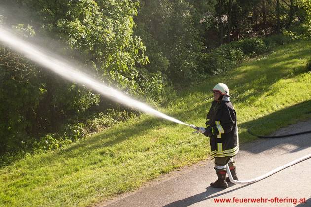 Nach 2 ½ intensiven Stunden wurde die Übung beendet und mit den Aufräumarbeiten begonnen. Während Tank Oftering den Wassertank am Hydranten füllte, begann die Besatzung von Pumpe Oftering im Feuerwehrhaus mit der Reinigung und Wartung der technischen Geräte…