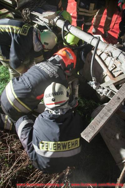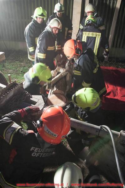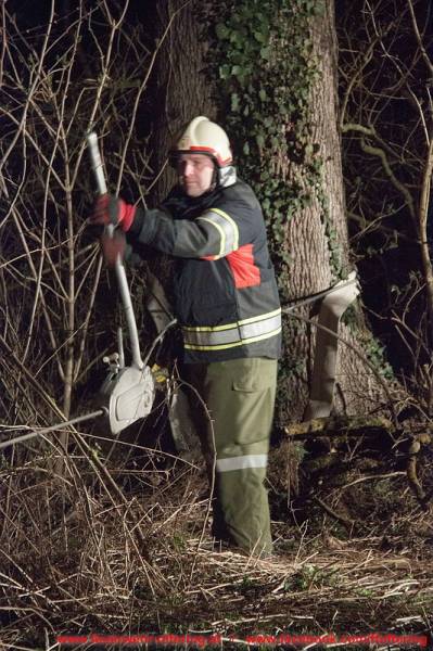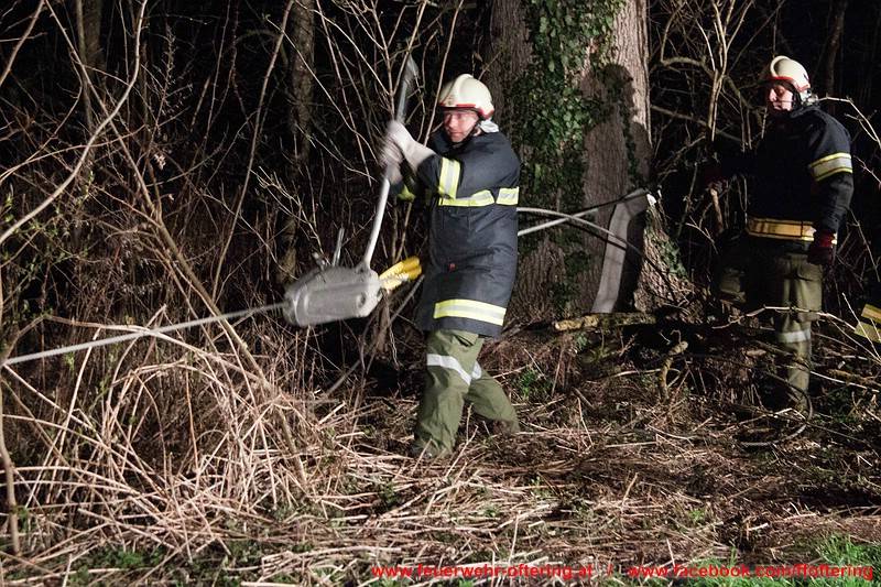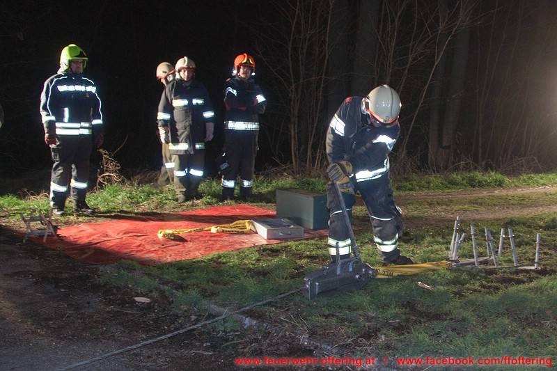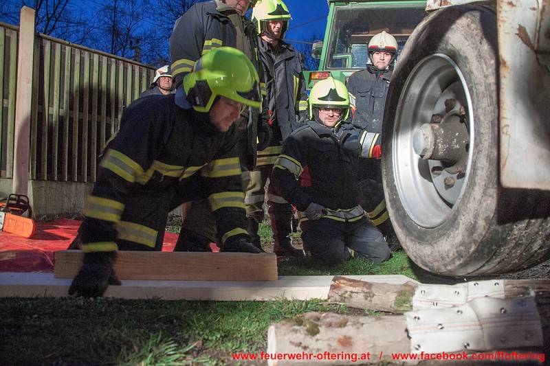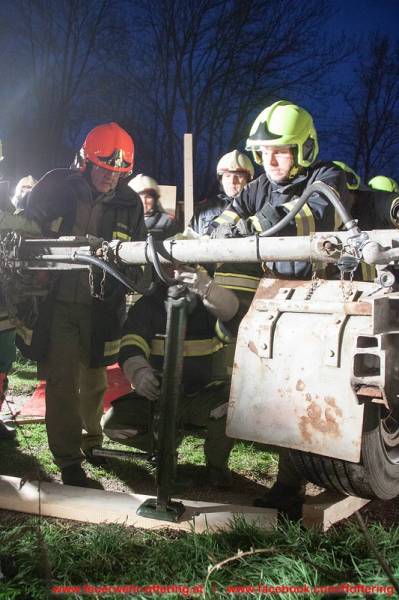Die Durchführung von Bergemaßnahmen mittels der Gerätschaften im LFB-A, jedoch ohne hydraulischem Rettungsgerät, war Übungstheme der Monatsübung im März.Begonnen wurde mit einer eingeklemmten Person unter einem Anhänger. Nach der Sicherung des Anhängers wurde dieser mit einer Stockwinde angehoben und mittels Pölzholz gesichert. Dann erfolgte die Rettung der Übungspuppe mittels Schaufeltrage.Anschließend wurde ein multifunktionales, jedoch nur mehr sehr selten benutztes Gerät beübt - der Greifzug. Im LFB ist ein Greifzug mit 32 kN Zugkraft verlastet, der es ermöglicht höchst flexibel Lasten zu sichern, heranzuziehen oder auch sicher abzulassen.Nach dem Aufbau einer Freilandverankerung wurde das 11t schwere Fahrzeug mit Leichtigkeit gezogen.Parallel dazu hängte die zweite Gruppe einen zweiten Greifzug an einen Baum und zog damit das 14t schwere Tanklöschfahrzeug.