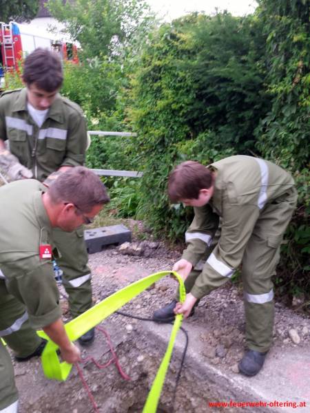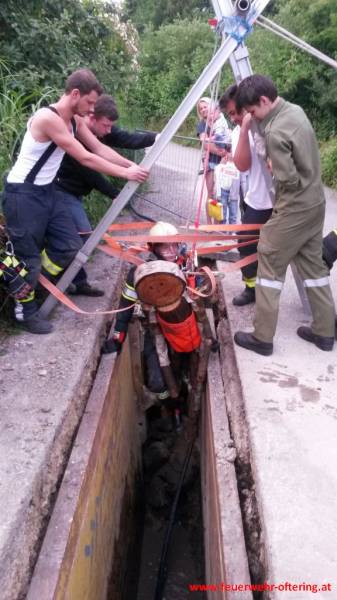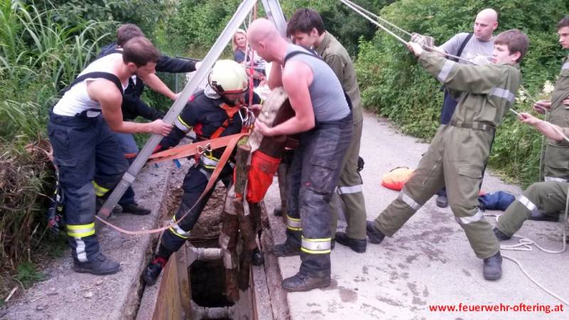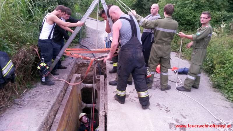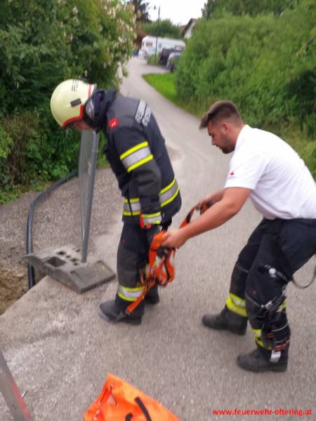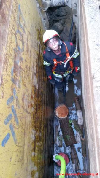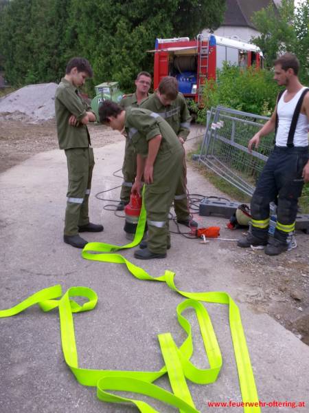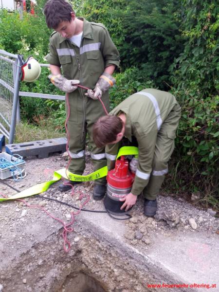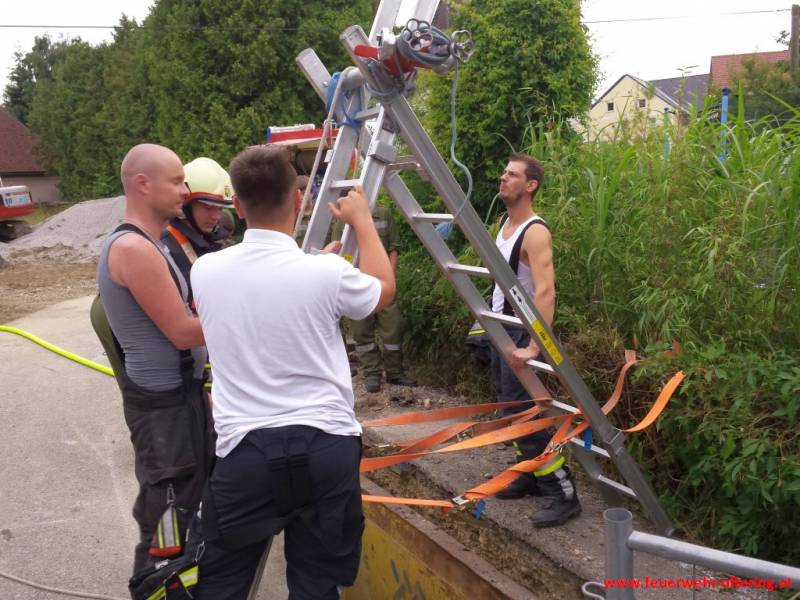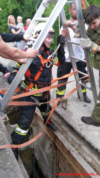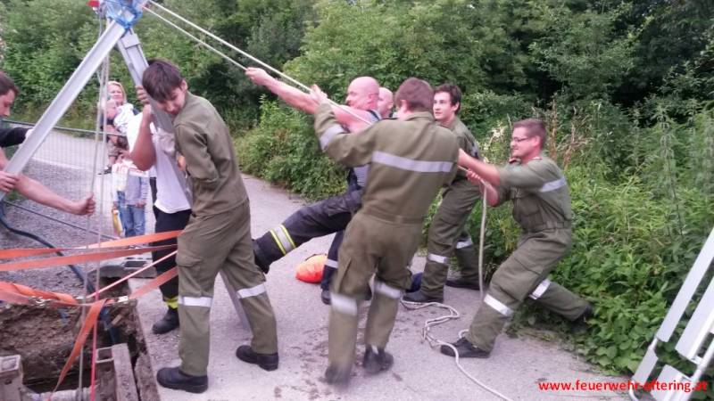 Um im Falle des Falles auch noch den Wald vor lauter Bäumen zu sehen, wurde eine behelfsmässige Lösung für die Personenrettung aus einfachsten, zur Verfügung stehenden Mitteln gebaut und beübt. Vor allem die Jungfeuerwehrmänner und Frauen waren von der Effizienz und Einfachheit der Lösung begeistert. Aufgrund diverser Umbauarbeiten im Ort, boten sich auch noch die perfekten, realistischen Voraussetzungen. Unser "Hoiz-Weibi" durfte wie immer das Opfer spielen und trug ebenfalls zum nötigen Realismus bei.