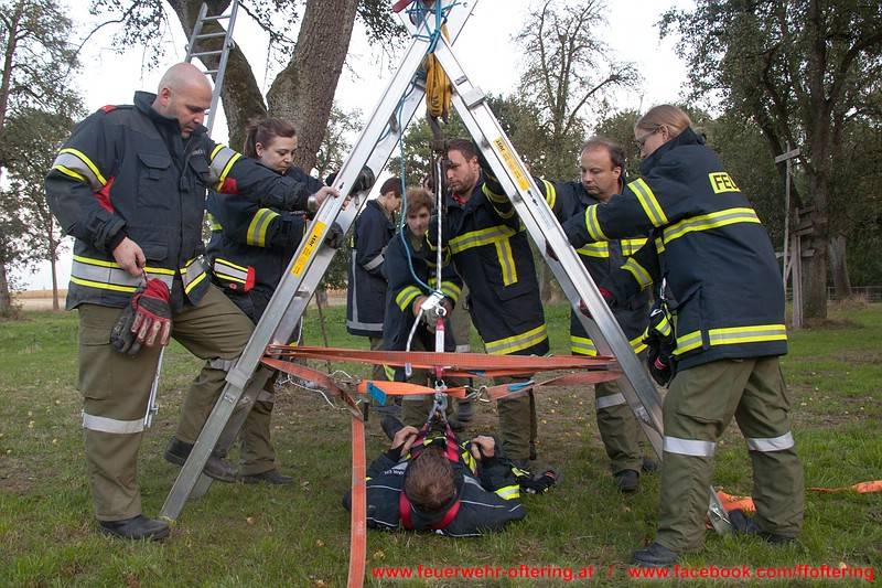 Eine zweite Gruppe beschäftigte sich mit dem Thema Schachtbergung und dem Aufziehen von verunfallten Personen.