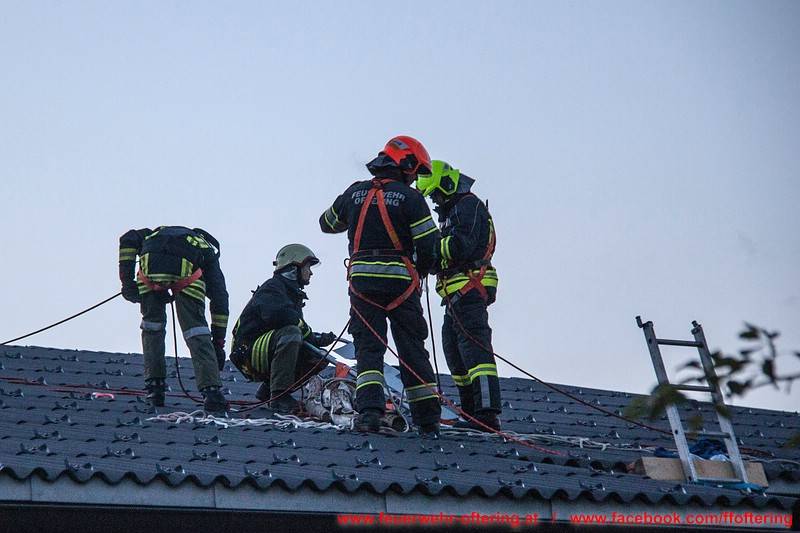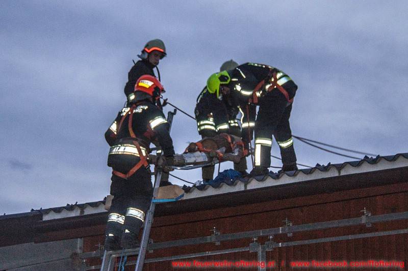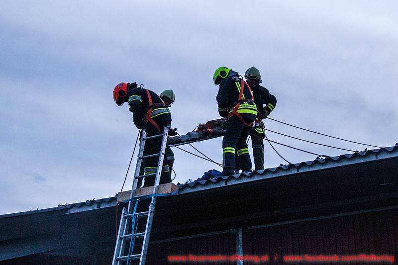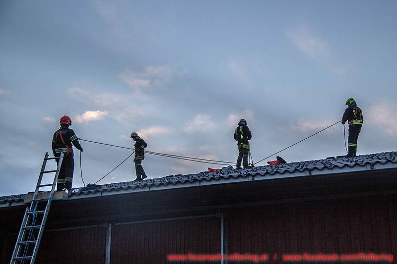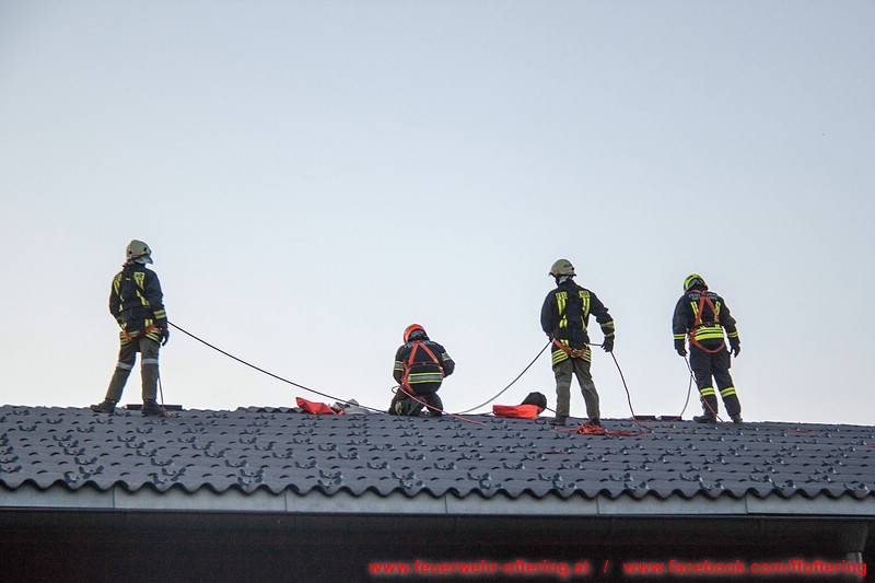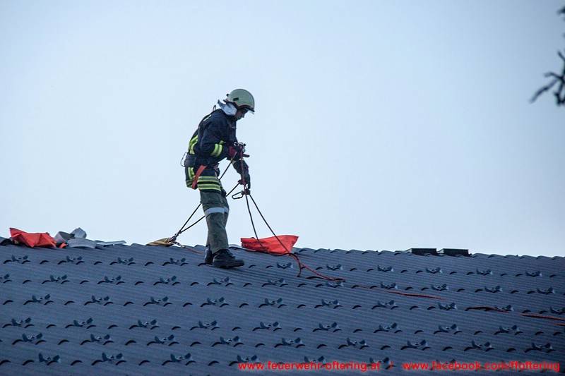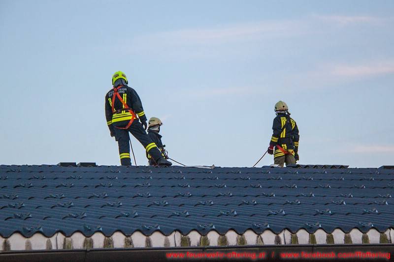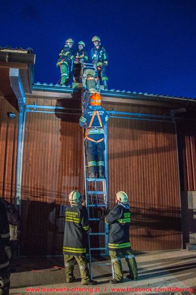 Das Thema Eigensicherung im Feuerwehreinsatz führte die Kameraden bei der Monatsübung im September auf ein Dach einer landwirtschaftlichen Lagerhalle. Neben der umfangreichen Eigensicherung wurde auch die Rettung einer verunfallten Person am Dach beübt. Zum Einsatz kamen ausschließlich bei der FF Oftering vorhandene Sicherungsmittel, die im Zuge der Schnee-Einsätze der letzten Jahre angeschafft wurden.