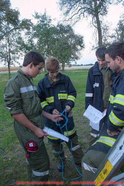 Das Thema Eigensicherung im Feuerwehreinsatz führte die Kameraden bei der Monatsübung im September auf ein Dach einer landwirtschaftlichen Lagerhalle. Neben der umfangreichen Eigensicherung wurde auch die Rettung einer verunfallten Person am Dach beübt.