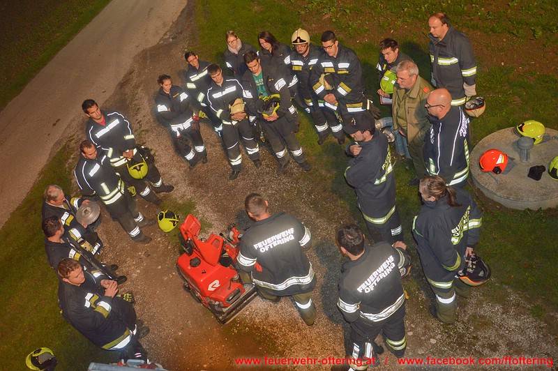 Unter der Leitung von Thomas Grurl und Roland Weber von der FF Oftering versammelten sich die Kameraden beim Löschwasserbecken in Staudach und starteten mit dem Theorieteil zur Tragkraftspritze. Neben den theoretischen Infos gab es auch Anschauungsmaterial wie ein Laufrad oder eine Gleitringdichtung.