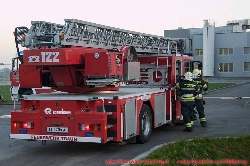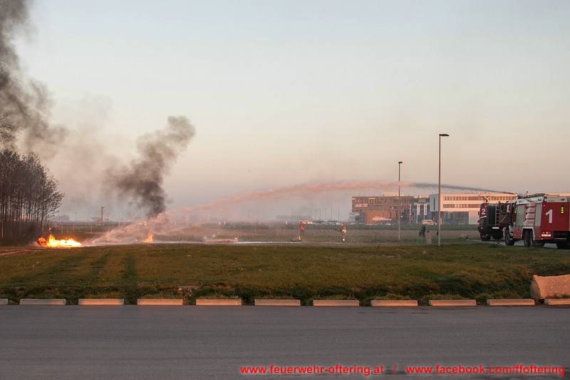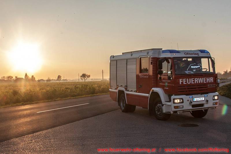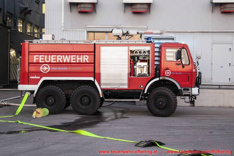 Die FF Oftering bezog im nord-östlichen Bereich Stellung. Der erste Einsatzauftrag war Beginn der Brandbekämpfung am Dach. Dazu kletterte der erste Atemschutztrupp über die Leiter auf das Dach des Gebäudes. während mittels TLF die Steigleitung in Betrieb genommen wurde. Oben am Dach wurden 3 verletzte und 3 getötete Passagiere vorgefunden. Nachdem weitere Kräfte das Dach erklommen hatten wurden weitere Geräte per Leine auf das Dach gezogen. Nach der Brandbekämpfung am Boden kamen weitere Kräfte der militärischen Feuerwehr zur Unterstützung auf das Dach.