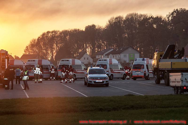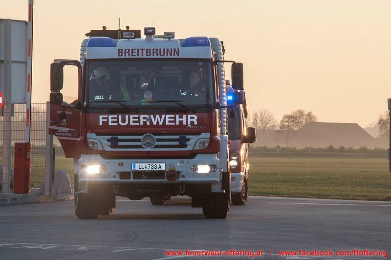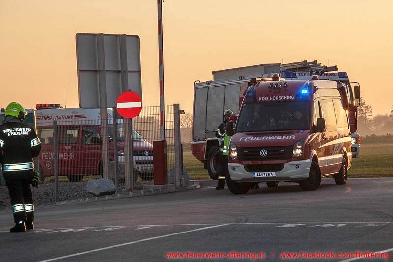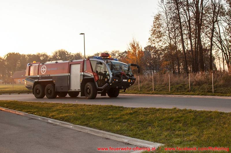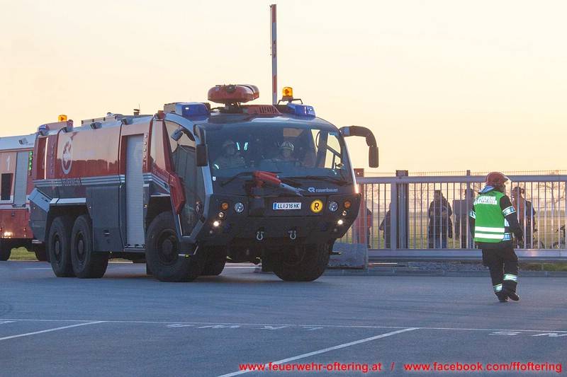 Nach dem Eintreffen der örtlichen Feuerwehren Freiling und Oftering wurde die Alarmstufe entsprechend des Ausmaßes erhöht, womit dann in weiterer Folge neben der militärischen und der zivilen Flughafenfeuerwehr auch die freiwilligen Feuerwehren Breitbrunn, Hörsching, Marchtrenk, Pasching, Rutzing und Traun sowie das Rote Kreuz aus Traun, Leonding und Wels und die Polizei zum Einsatz kamen.