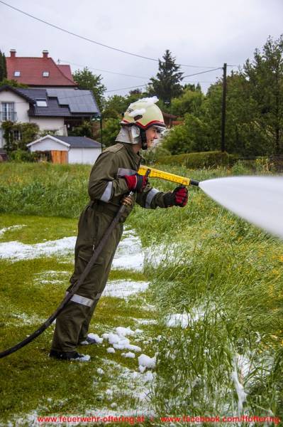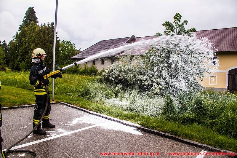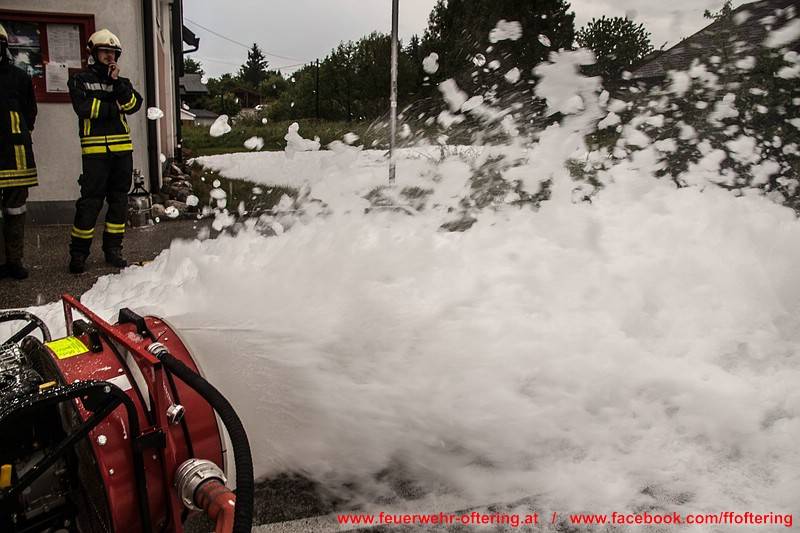 Der Feuerwehr Oftering stehen in beiden Fahrzeugen unterschiedlichste Gerätschaften zur Verfügung, mit verschiedenen Schaummittel Schwer-, Mittel- und Leichtschaum zu erzeugen.